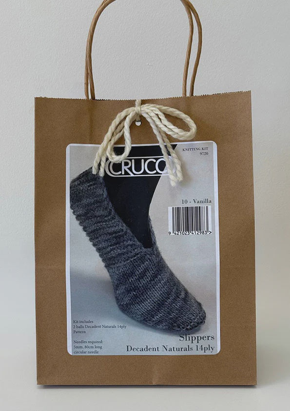 Slipper knitting kit using our Decadent 14ply wool. The yarn is 100% pure New Zealand wool.