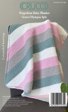 Neapolitan Baby Blanket Kit using our Olympus 4ply yarn. This yarn is acrylic and lightweight for the summer months.