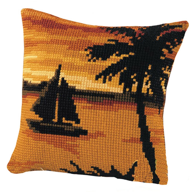 Complete Set: Includes a printed cushion cover, diagram, threads, and needle.
