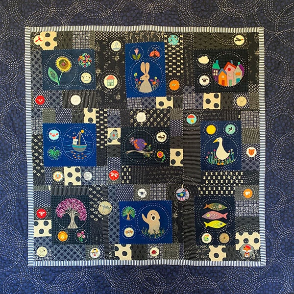 This quilt features wool applique and hand quilting