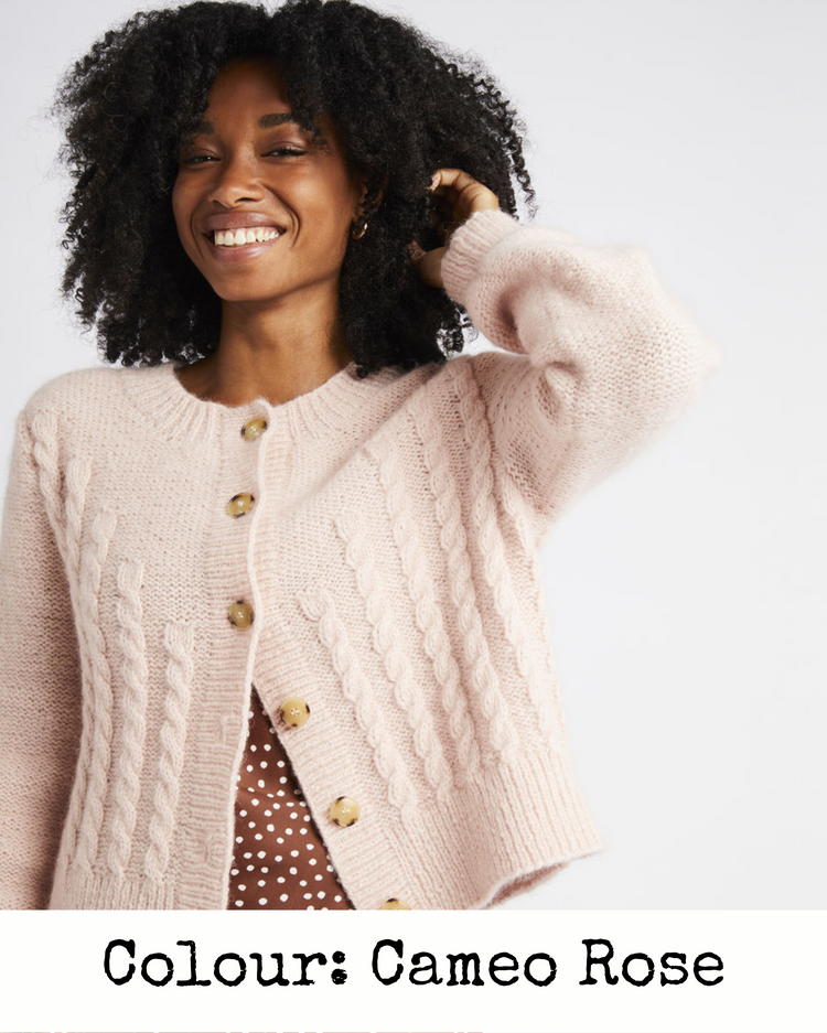 Cropped shape, button-down front and cables for days; reasons why the Lille Cardigan deserves to be stitched by you. An intermediate level project, this pretty knit is sister to the Edith Cardigan, and has just as much Parisian personality.