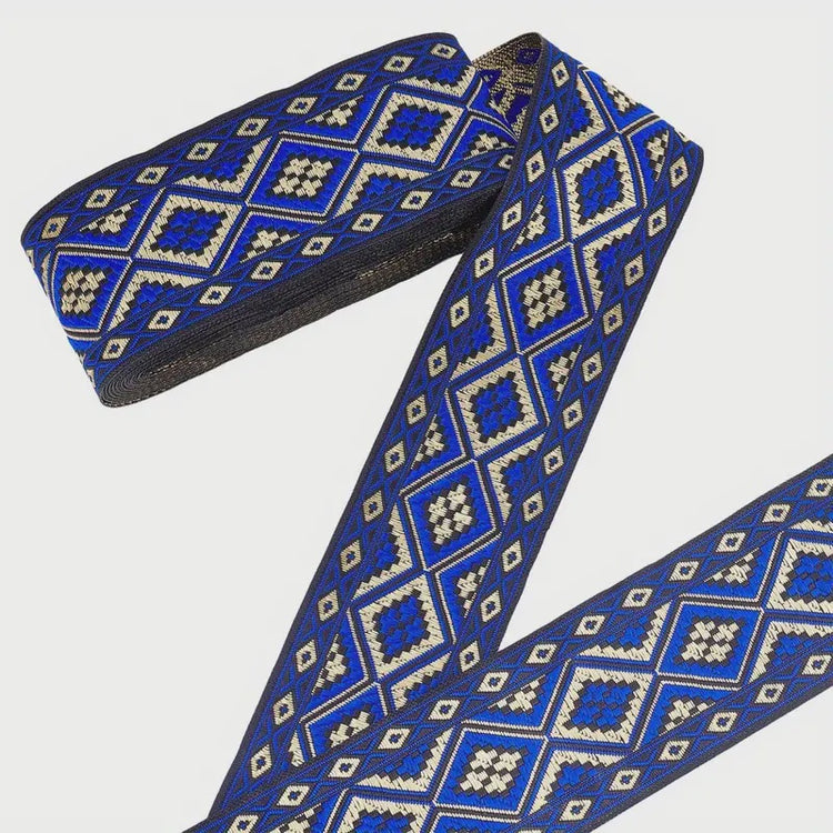 1pc 2 Inch (50mm) About 7.66 Yards (7m)/Bundle Ethnic Style Polyester Trim Polyester Ribbon For Sewing Decoration Flat With Rhombus Pattern Blue