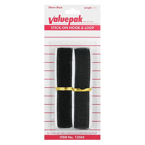Valuepak Stick On Hook & Loop Tape is easy to use whenever you need a quality result. Simply peel and stick, then press the Hook and Loop together for a strong bond. Also available in Sew On.