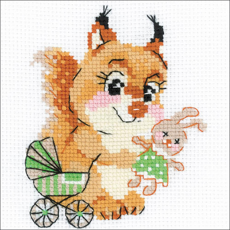 Express your love for arts and crafts with these beautiful cross stitch kits! Find a themed kit for any taste! This package contains 10 count white Zweigart Aida, one color card, wool/acrylic thread on organizer cards, and one needle. Finished size: 6x6 inches. Design: Playing House. Designer: Anna Korol. Imported.