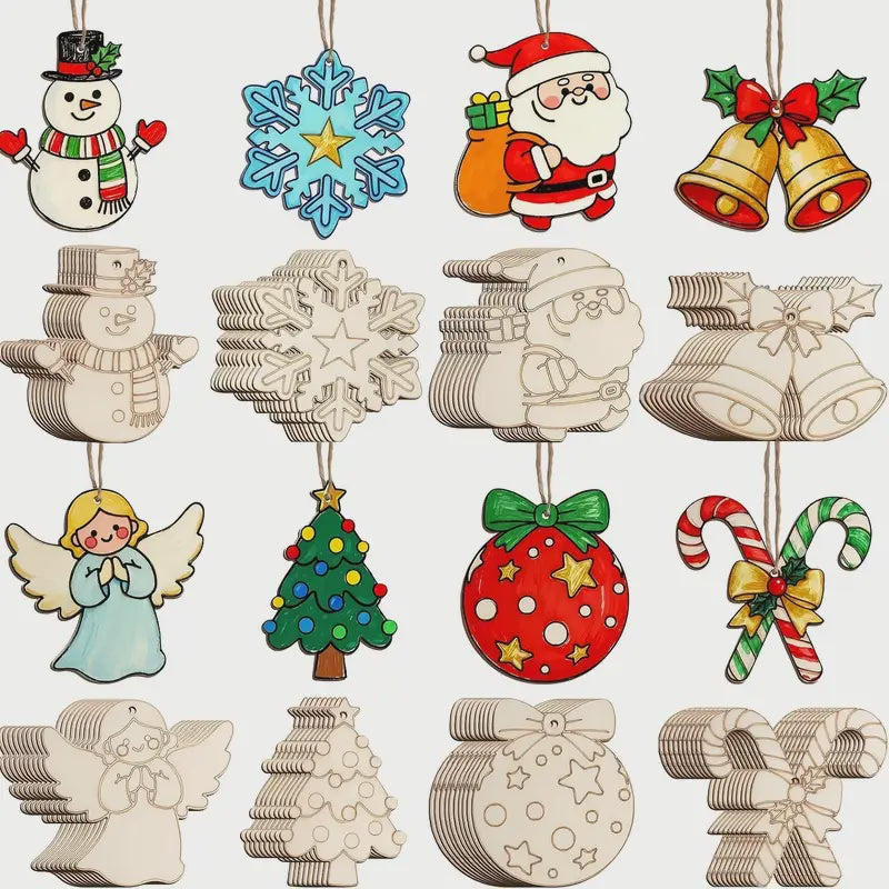 Wooden Christmas Decorations - Mixed Pack of 8