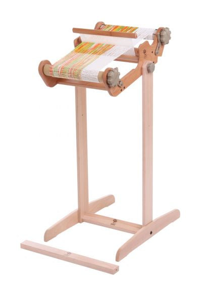 A strong and sturdy loom stand is available for the SampleIt Loom 25cm (10ins) and 40cm (16ins). Includes cross rail for both loom sizes. The loom is not designed to sit rigid in place on the stand, it is designed to rest on your lap.