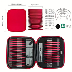 Elevate your crafting experience with this premium set of 13 pairs of interchangeable circular knitting needles, designed for versatility, durability, and style. Each needle features oxidized aluminum tips that glide effortlessly through yarn, ensuring smooth and precise stitching for all your sweater-making and crochet accessory projects.