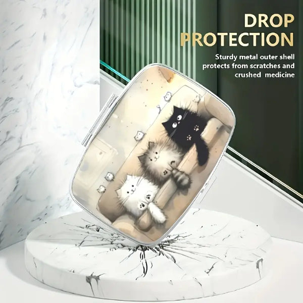 Whimsical Cat Illustration Metal Box – Multi-Purpose Organizer
