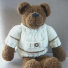 Alberto Bear is available only as a kit as his pattern has been specifically designed for Alpaca Yarns Boucle and Indiecita yarns. The body is worked in double strands of the boucle yarn and so that the purl side of the knitted fabric is the right side giving him the softest cuddly fuzzy feel. His jumper is not designed to be removed and is made from the softest baby alpaca yarn with a contrast stripe.