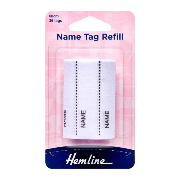 36 tags. Printed iron-on tags refill. Use tags to mark school and sportswear, camping equipment, and personal clothing. Can be used with other Hemline permanent labelling pens.