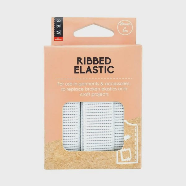 Ribbed Elastic - 20mm x 3m. Designed for waistbands in medium to heavy weight fabrics. Ribbed design resists folding & twisting, great for sewing, crafting and odd jobs where elastic is required.