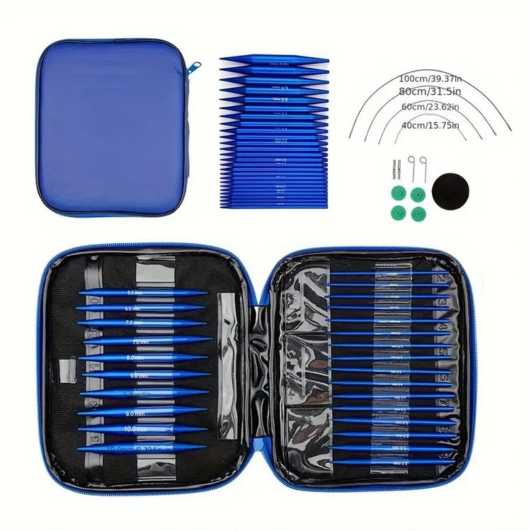 13 Pairs of Blue Interchangeable Circular Knitting Needles Set