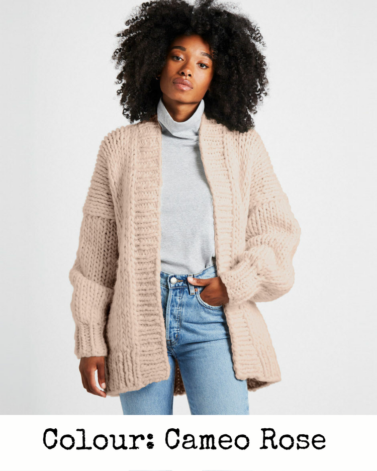 Finally. Your hero’s here to rescue you from the winter cold. This cosy cardigan has an oversized, roomy fit with intricate rib stitch detailing.